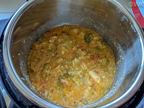 I made this kootu as a one-pot dish with my Instant Pot, unlike the chow-chow kootu where I went with the PIP method. I prepared the masala, tempered and dumped everything in the pot and within 15 minutes, the kootu was ready.