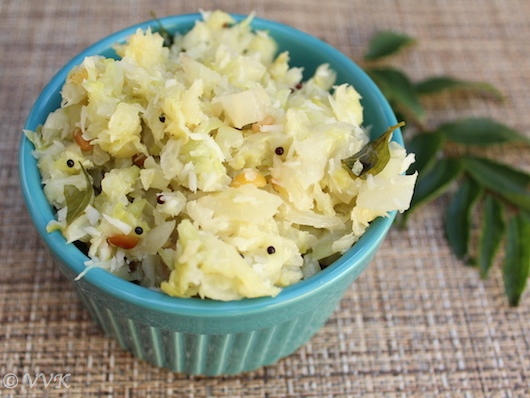 Here comes my steamed cabbage poriyal with coconut in a simple coconut oil tempering. A recipe with minimal ingredients that can be a side for your rice or that can be a salad too.