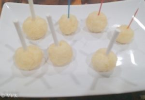 - Now insert the cakepop sticks or tooth picks and keep it in the freezer for 30 minutes for the pops to set.
