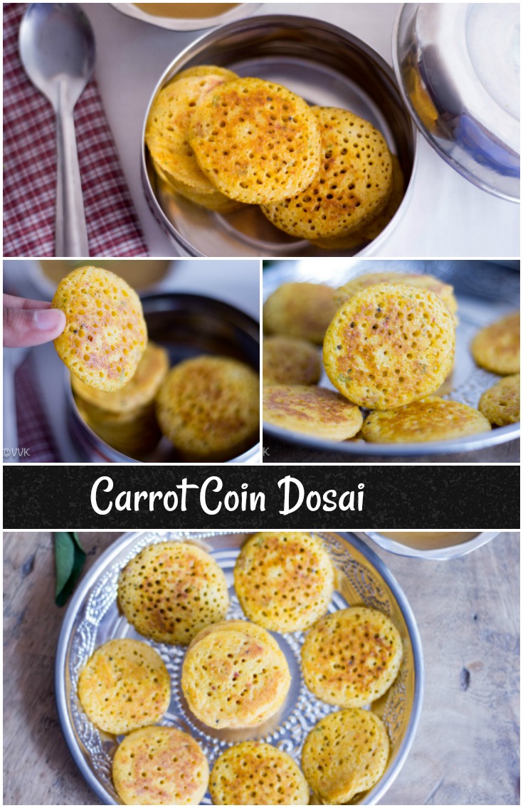 This Carrot Coin Dosai is the kid’s friendly carrot flavored coin dosa/uttapam. The perfect kid-friendly lunch box – healthy and delicious, too.