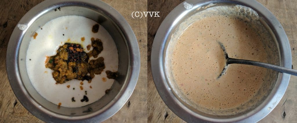 - Add the ground paste, salt, and the tempering to two cups of dosa batter and mix well.