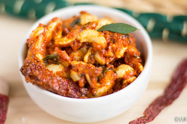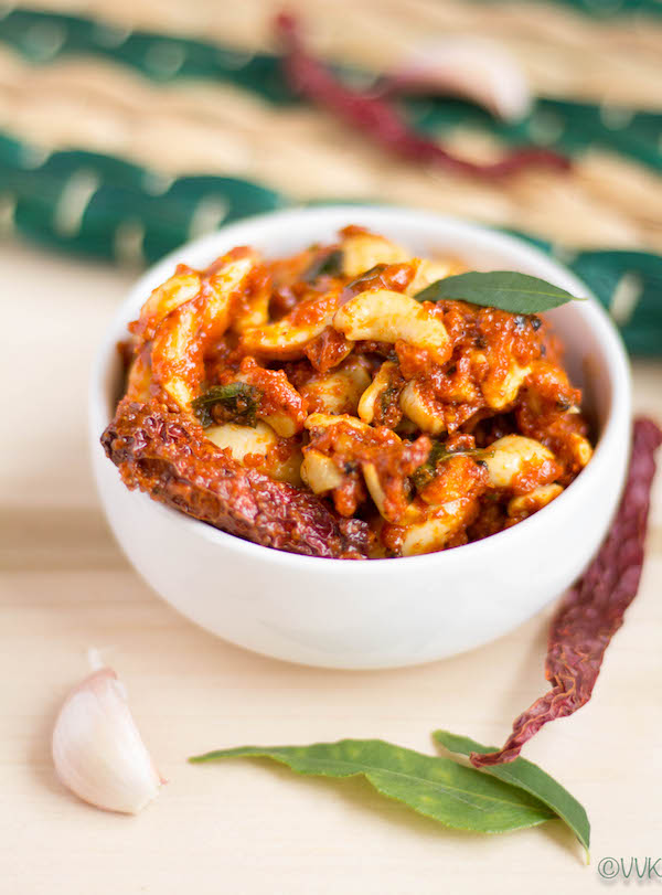 That’s it. Spicy garlic cashew pickle is ready. Serve hot with rice.