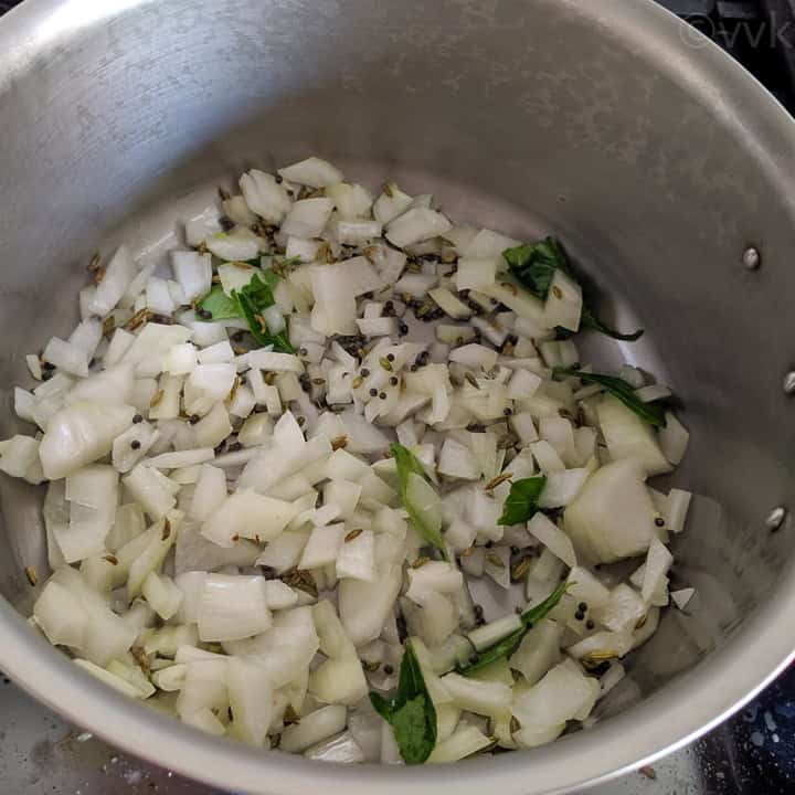 If you want it more like kuruma, include some garam masala, or while tempering, you can include some cinnamon, cardamom, and cloves. I kept this gravy little tangy and went with 1 tsp of tamarind paste. You can reduce it to half a tsp as well. Please do check the recipe notes for other ingredient variations and for the pressure cooker version.