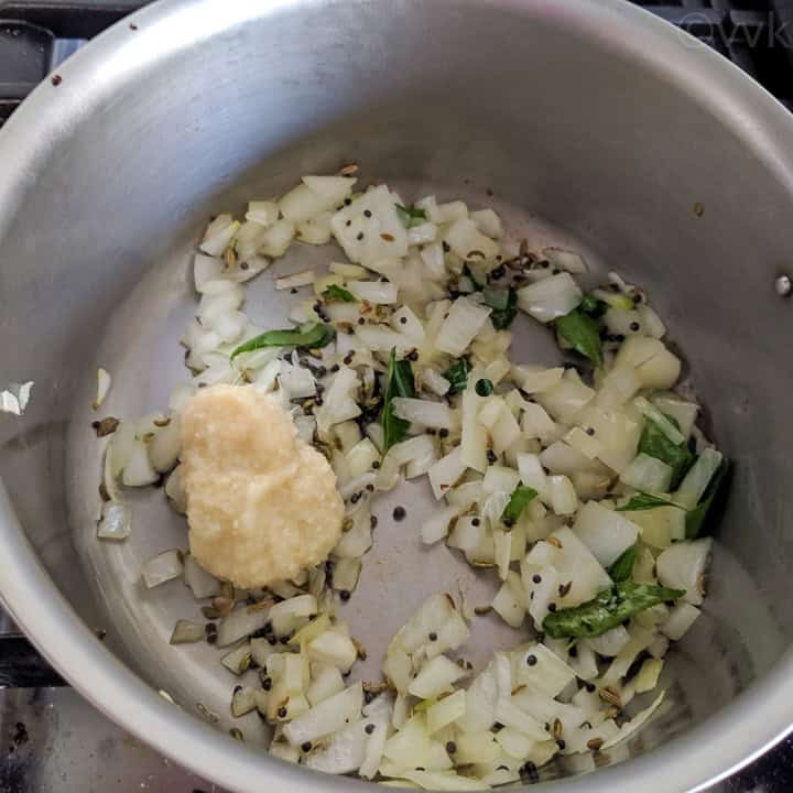 - Then add the ginger-garlic paste and cook until the raw smell goes off.