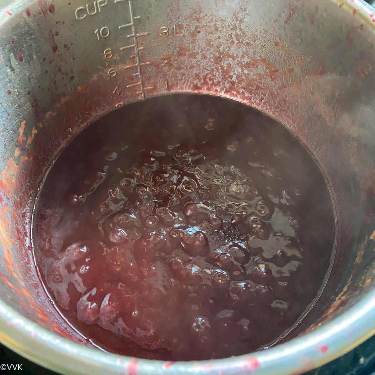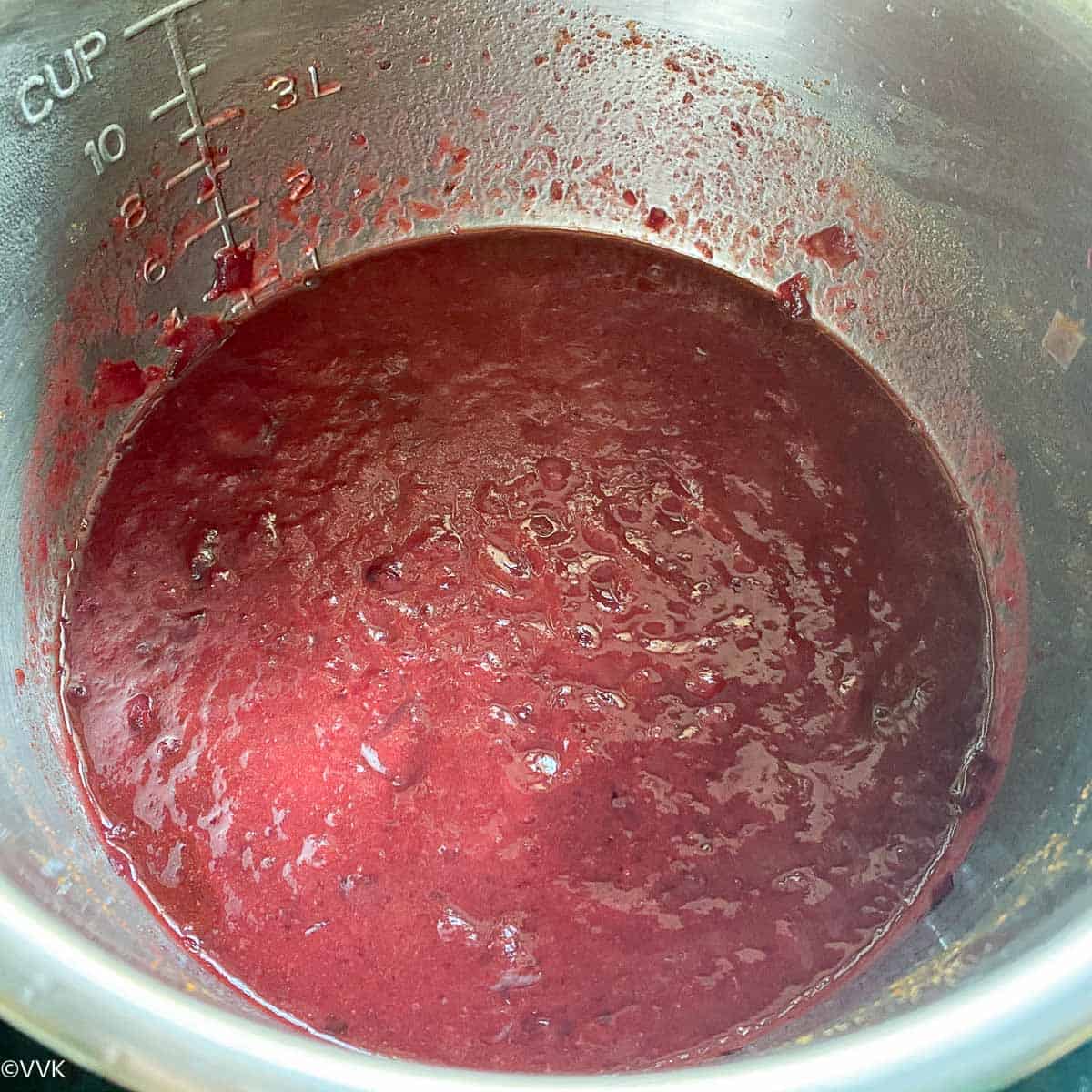 - If you are not using an immersion blender, let the chutney cool and then grind/blend it in a mixer jar or blender in batches and then add the ground chutney to the Instant Pot and simmer again.