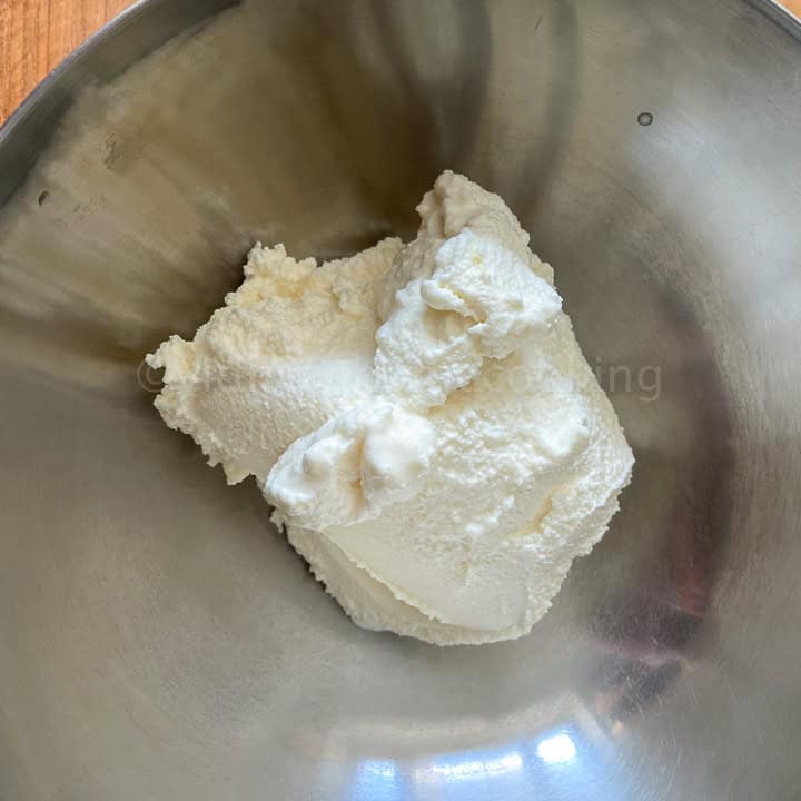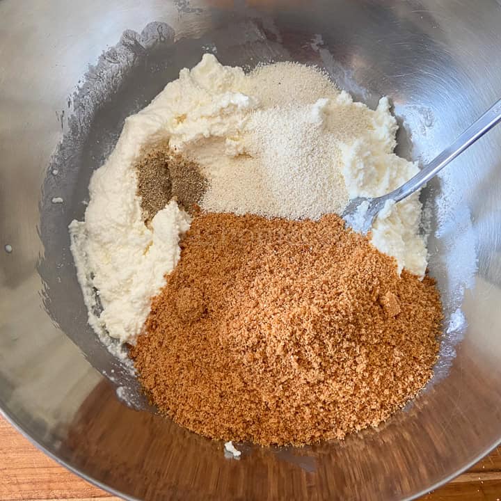 - In a mixing bowl, add the ricotta cheese and mix it well. I did not strain the water, and I used the ricotta cheese directly from the box.