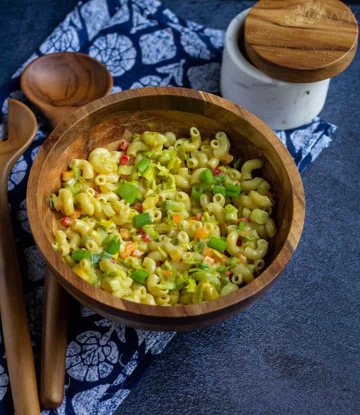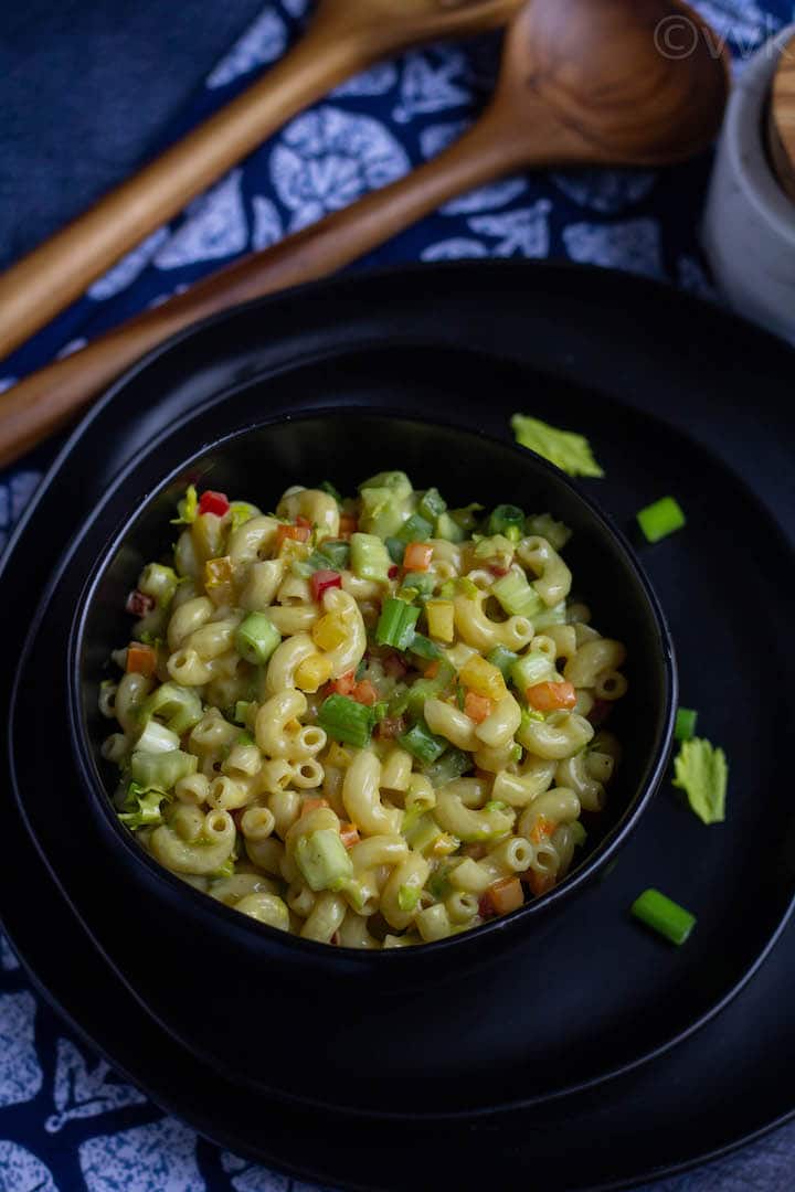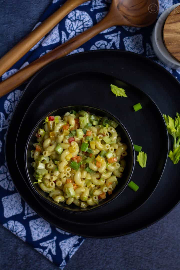 Here is my take on the classic macaroni pasta salad with vegan mayonnaise and vegetables. This cold and egg-free pasta salad is a crowd-pleaser, and you can easily customize this to a vegan salad!