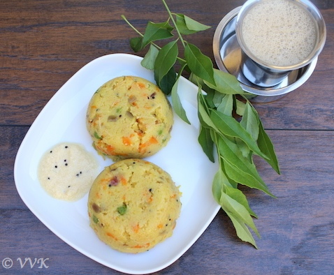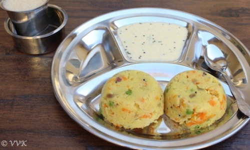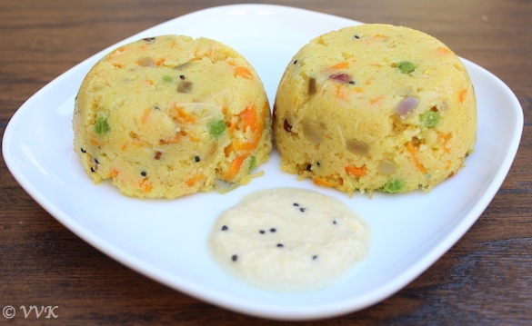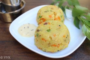 Rava Kichadi is one of the popular tiffin items commonly served with coconut chutney. It is prepared with rava, vermicelli and vegetables.