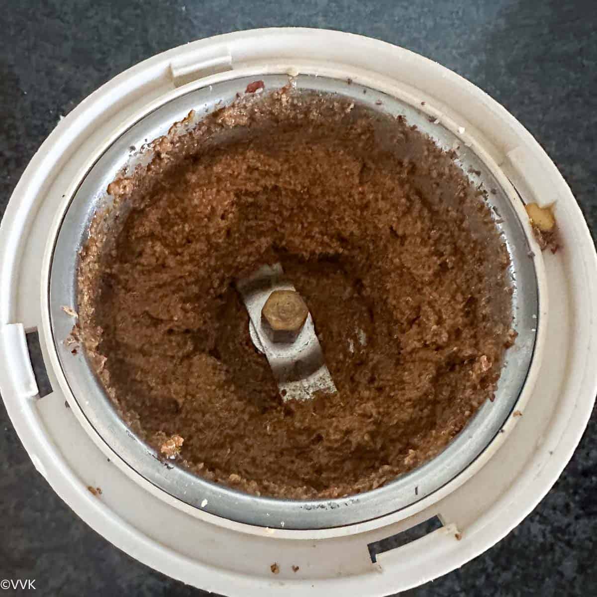 - Let the roasted mixture cool. Then, add the tamarind paste and salt to the mixture jar.
