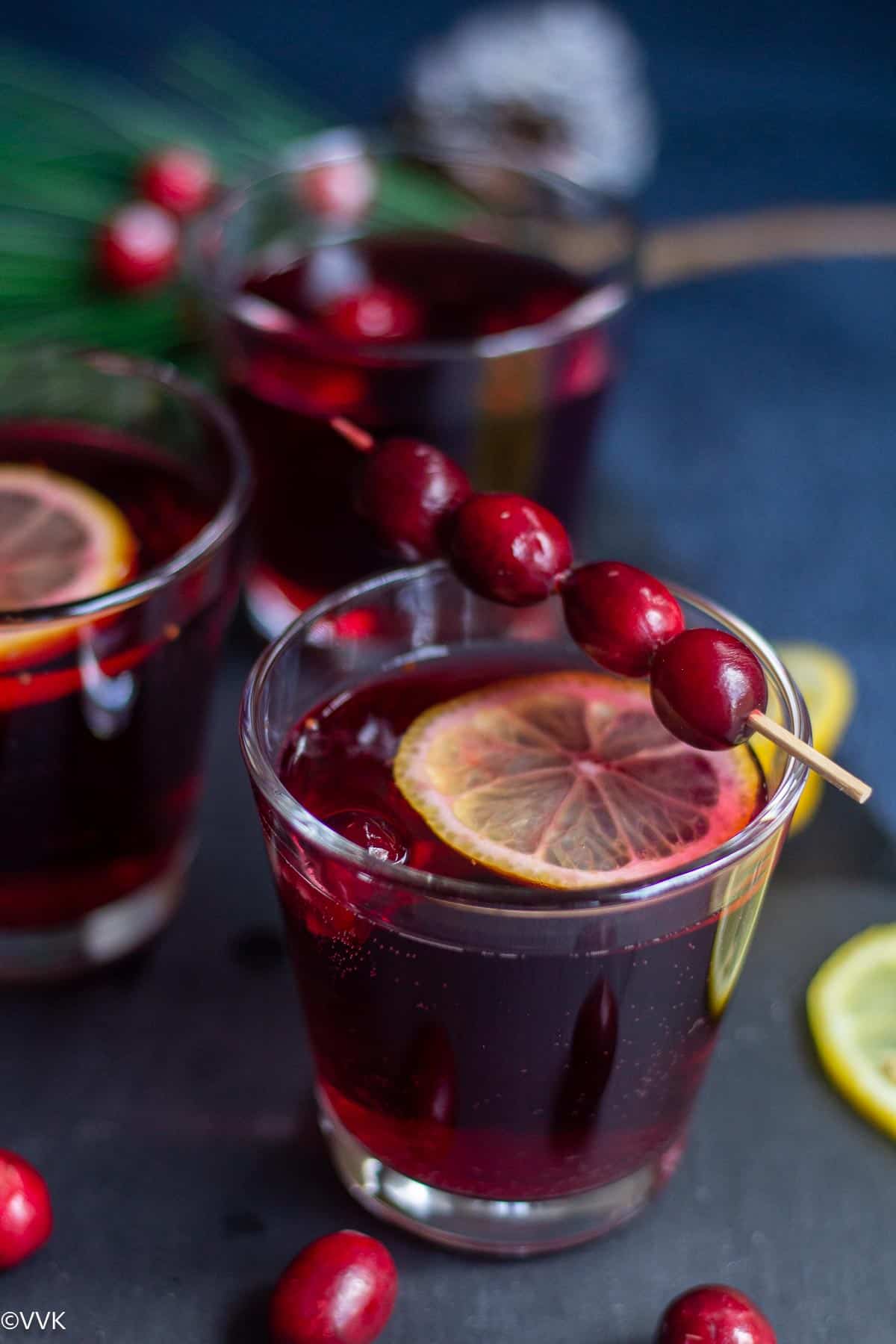 Call this drink a mocktail or fruit punch, this vibrant and refreshing drink made with ginger ale, cranberry juice, and blackcurrant juice concentrate is perfect for this holiday brunch or lunch. In less than 2 minutes, you can prepare this mocktail. That’s all you need. The only time-consuming part is crushing the fresh cranberries. It’s that effortless recipe.