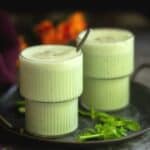 Refreshing yogurt beverage with the goodness of cucumber, mint, cilantro, and curry leaves! This cucumber lassi is a great summer-special recipe that you can customize to taste.