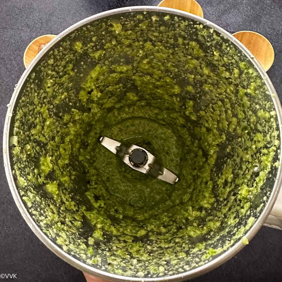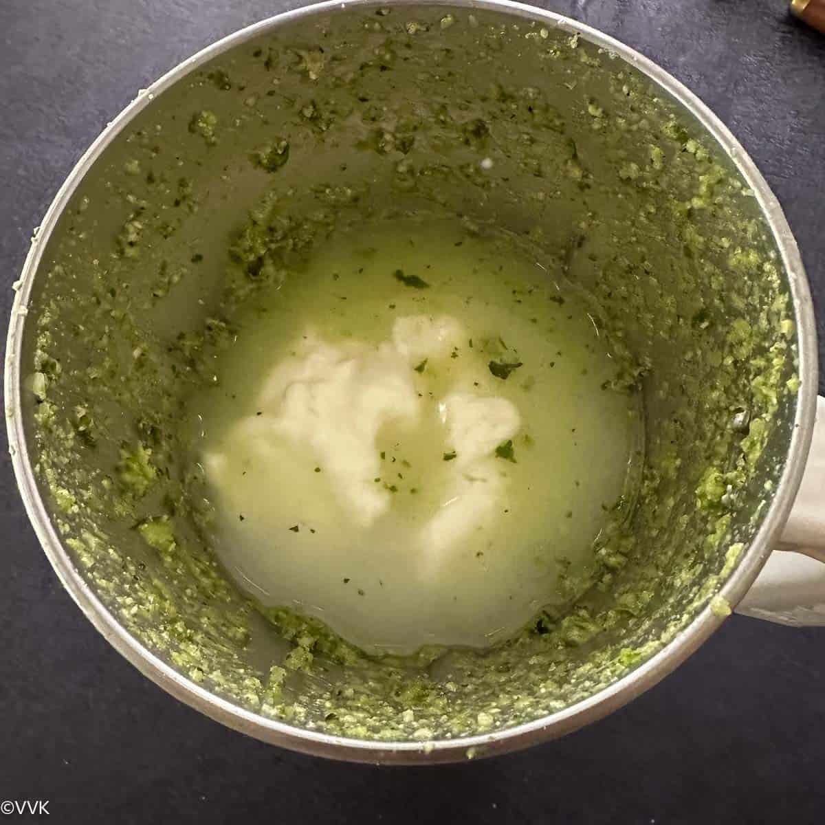 - Add the cucumber, green chili, mint leaves, curry leaves, and hemp hearts into a blender or mixer jar and grind them thoroughly.