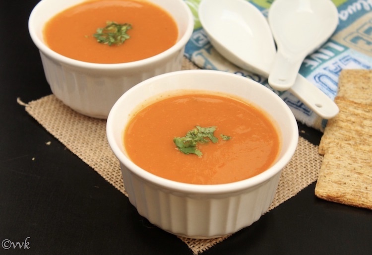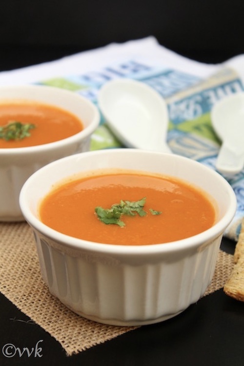 - Yummy soup is ready. Serve hot with croutons or biscuits or bread.