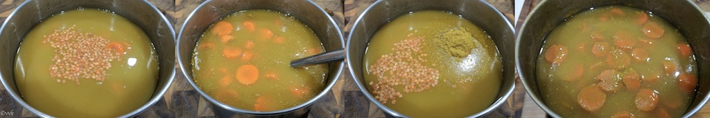- Pressure cook the carrots along with vegetable broth, lentils, curry powder and salt for about 3 to 4 whistles and let it cool.