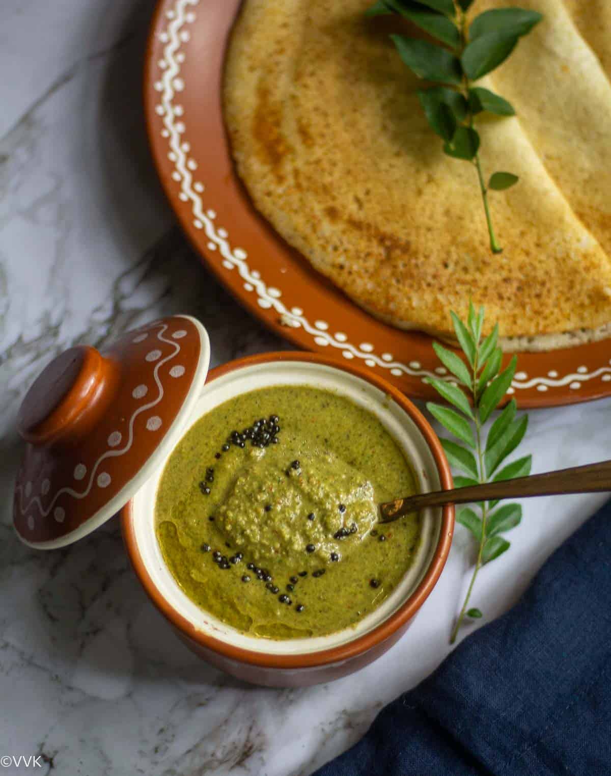 You can serve this chutney with idli, dosa, upma, and other tiffin items. Also, you can serve this with hot rice with a dollop of ghee or gingelly oil. If you plan to serve this chutney with rice, reduce the water while grinding it and make it a thick chutney.