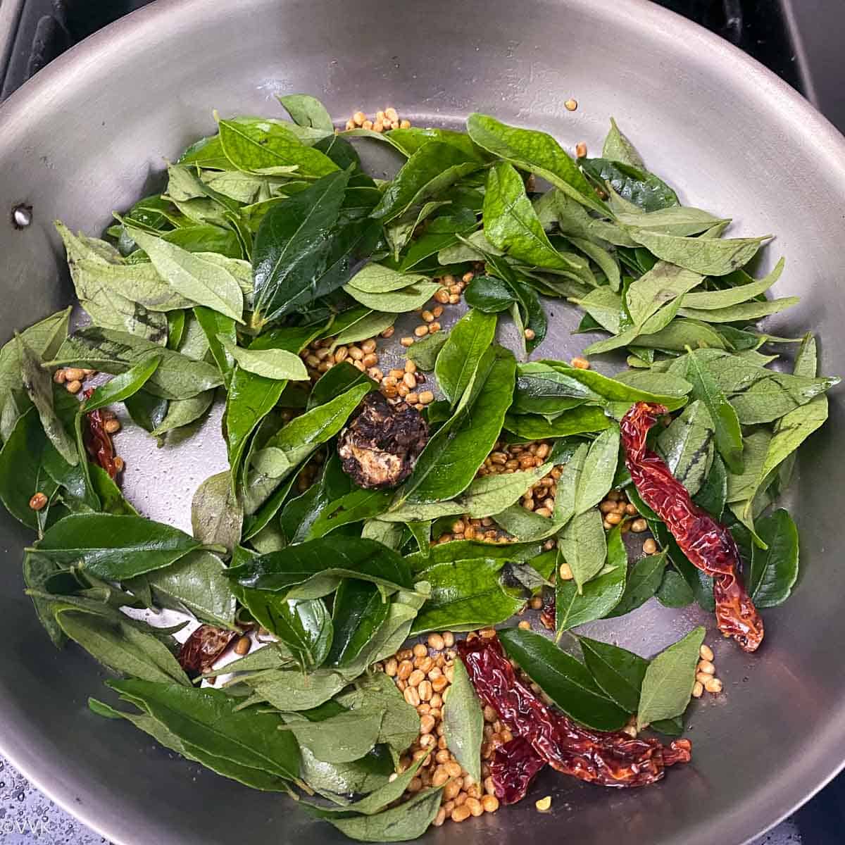 Okay, let me clarify that there is no substitute for curry leaves. If you can’t source curry leaves, please skip it and do not opt for any substitutes. Nothing can match curry leaves. These days you can find them easily in Indian groceries.