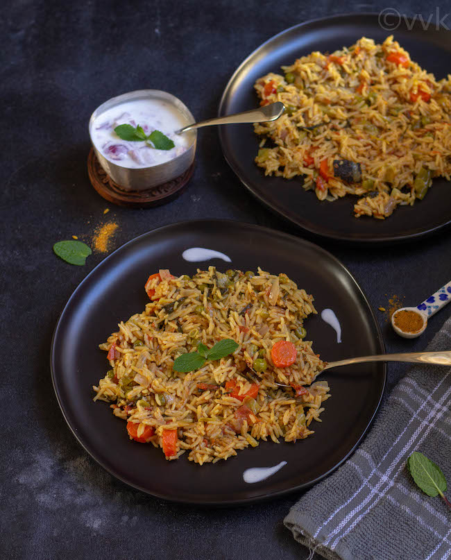 So now without any further ado, here comes the spicy Delhi veg biryani that I made in the pressure cooker.