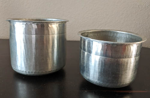 I know, I have posted a handful of rasam recipes but never talked about this special vessel that renders the unique flavor to the rasam. It is the Eeya Sombu or the Tin Alloy Vessel. In Tamil, we say it as Velli Eeyam. It is a combination of Tin and Aluminium. Kumbakonam is known for making this eeya patrams. I got mine from Kumbakonam. In olden days, they cook the rasam in eeya sombu on the kumutti adupu (traditional coal stove). Slow cooking in eeya sombu always yields a delicious rasam with a distinct flavor.