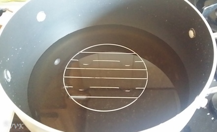 - In a wide flat pan (with lid), I added about 1 cup of water and let it heat. Once the bubble starts to form, add small plate or like stainless steel coaster like below.