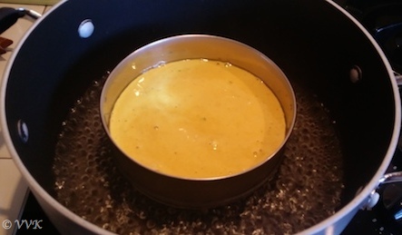 - In a wide flat pan (with lid), I added about 1 cup of water and let it boil. Once the bubble starts to form, add small plate or like stainless steel coaster like below.