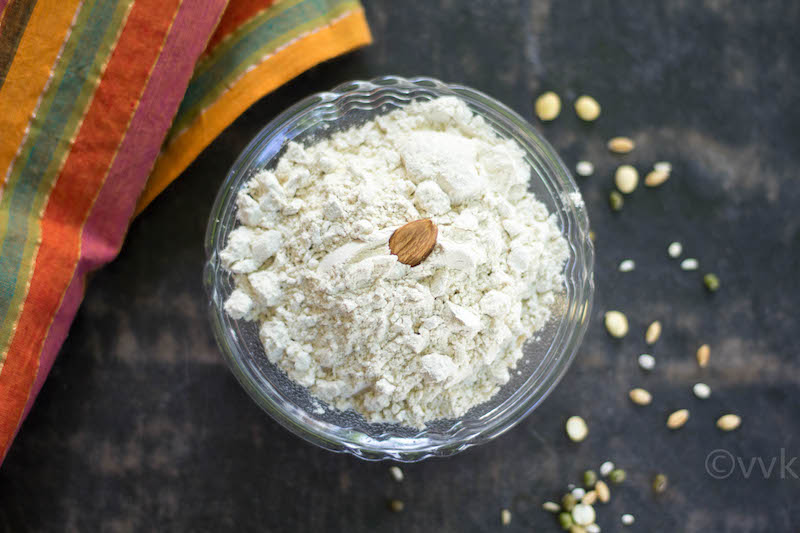 I highly recommend getting it ground in a flour mill or using a power home mill like wondermill or Nutrimill. But if you don’t have access to both, I recommend making the health mix in small batches and grinding in a mixer jar. Ensure you sieve the health mix and grind the coarse ones until smooth.