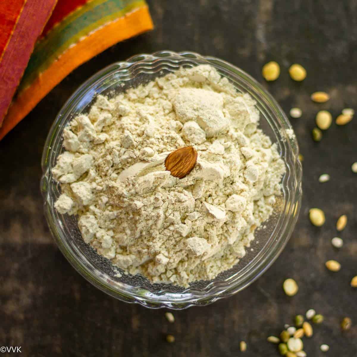 Sathu maavu is a Tamil word meaning nutritious flour. As the name indicates, it’s a homemade health mix powder, a nutritious blend of various grains, lentils, nuts, and spices. It is widely used in South Indian households as a healthy food supplement, especially for breakfast. People of all ages, including children, can consume this health mix.