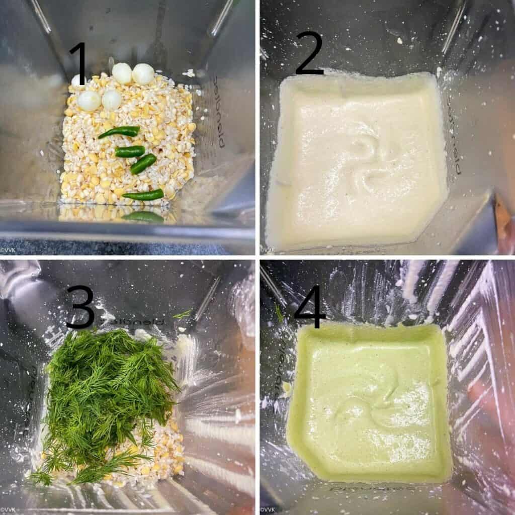 - Again add ¼ cup of water to the blender and add the remaining rice mixture and roughly chopped dill leaves. Grind into a smooth batter. I added about ¼ cup of water.