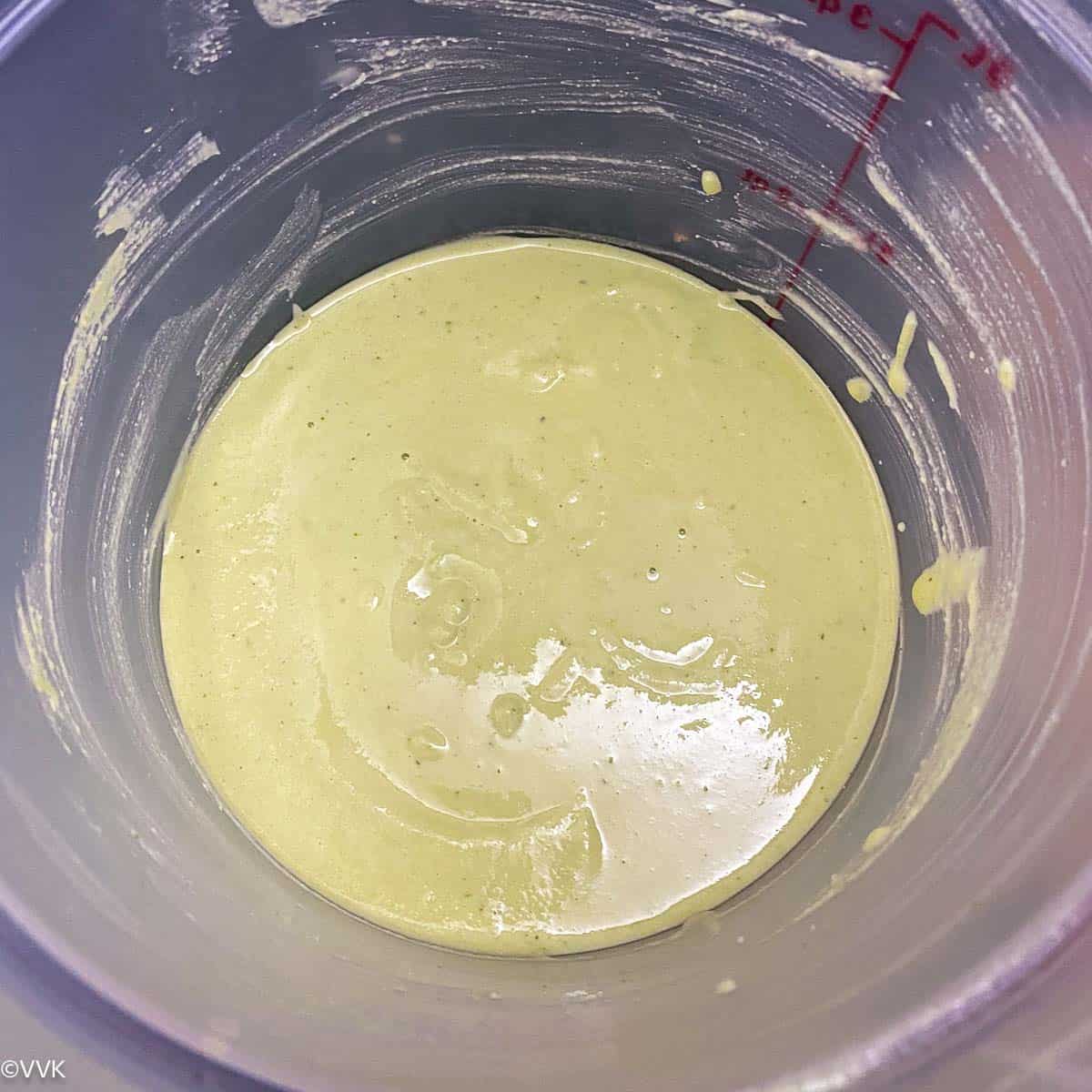 - Transfer the batter to a bowl and rinse the mixer jar with ¼ more cup of water and add it to the batter. Add salt and mix well.
