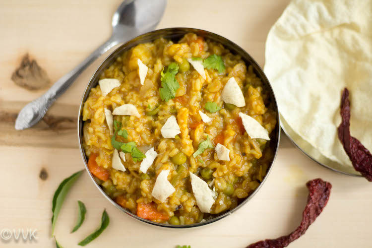 Here is my easy-peasy one-pot bisi bele bath recipe or the pressure cooker bisi bele bath that I usually prepare during busy weekday mornings or evenings. This one-pot dish is delicious and healthy, loaded with veggies and dal.