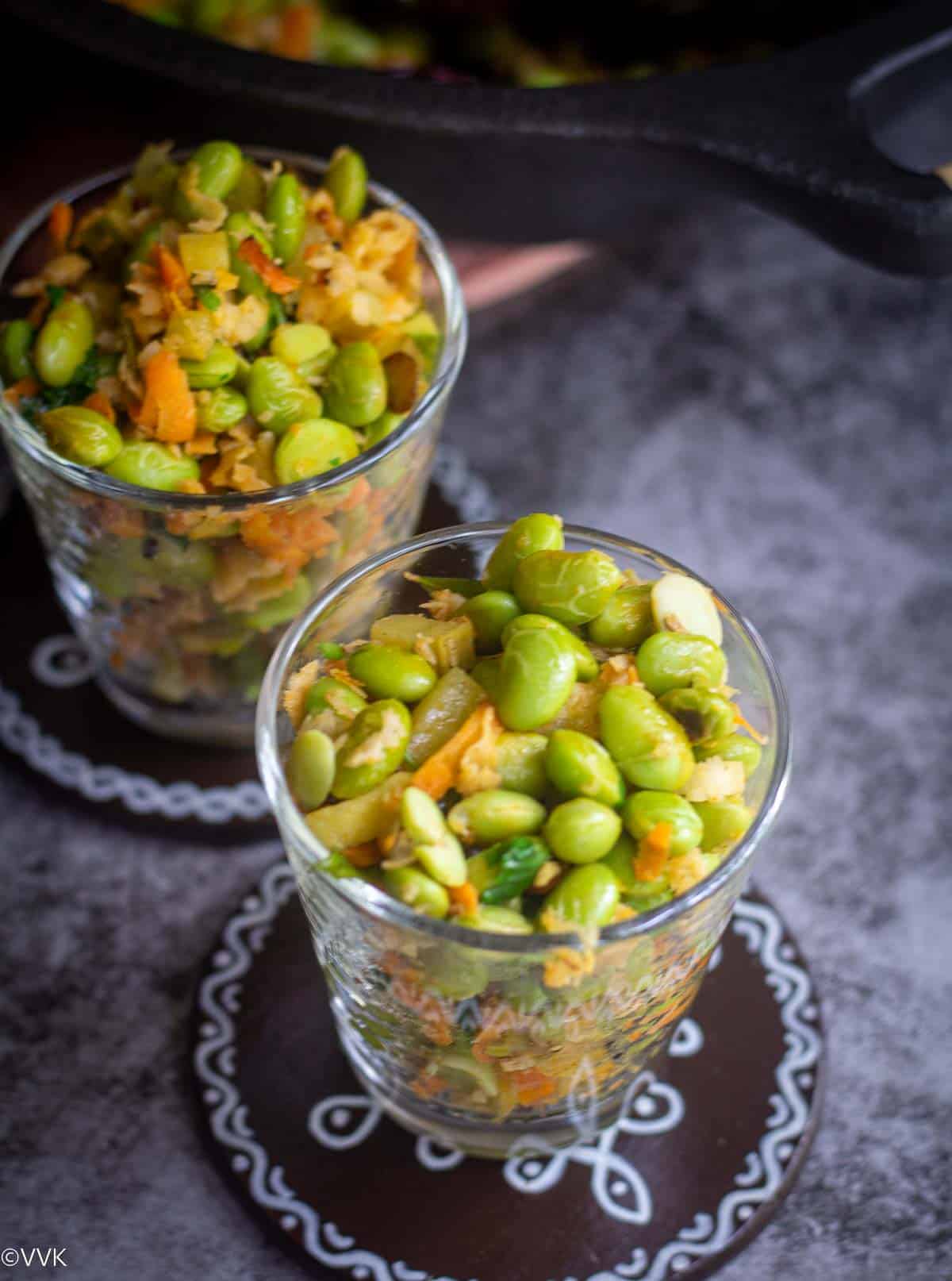PS – You can make the same sundal with other beans like garbanzo, black-eyed peas, kidney beans, etc. Refer to notes for more details.