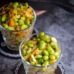 - No cook edamame sundal – You can skip the tempering altogether and make it more like a salad. In that case, you can add puffed rice, making it more like beach sundal with edamame instead of peanuts.