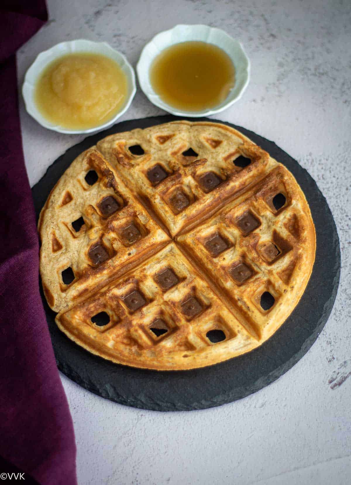 Serve the waffles warm with maple syrup or agave nectar along with fruits of your choice.