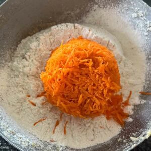 Carrots & Walnuts: Use fresh, sweet carrots—peeled and finely grated. Chop the walnuts into small, even pieces so there are no large chunks.