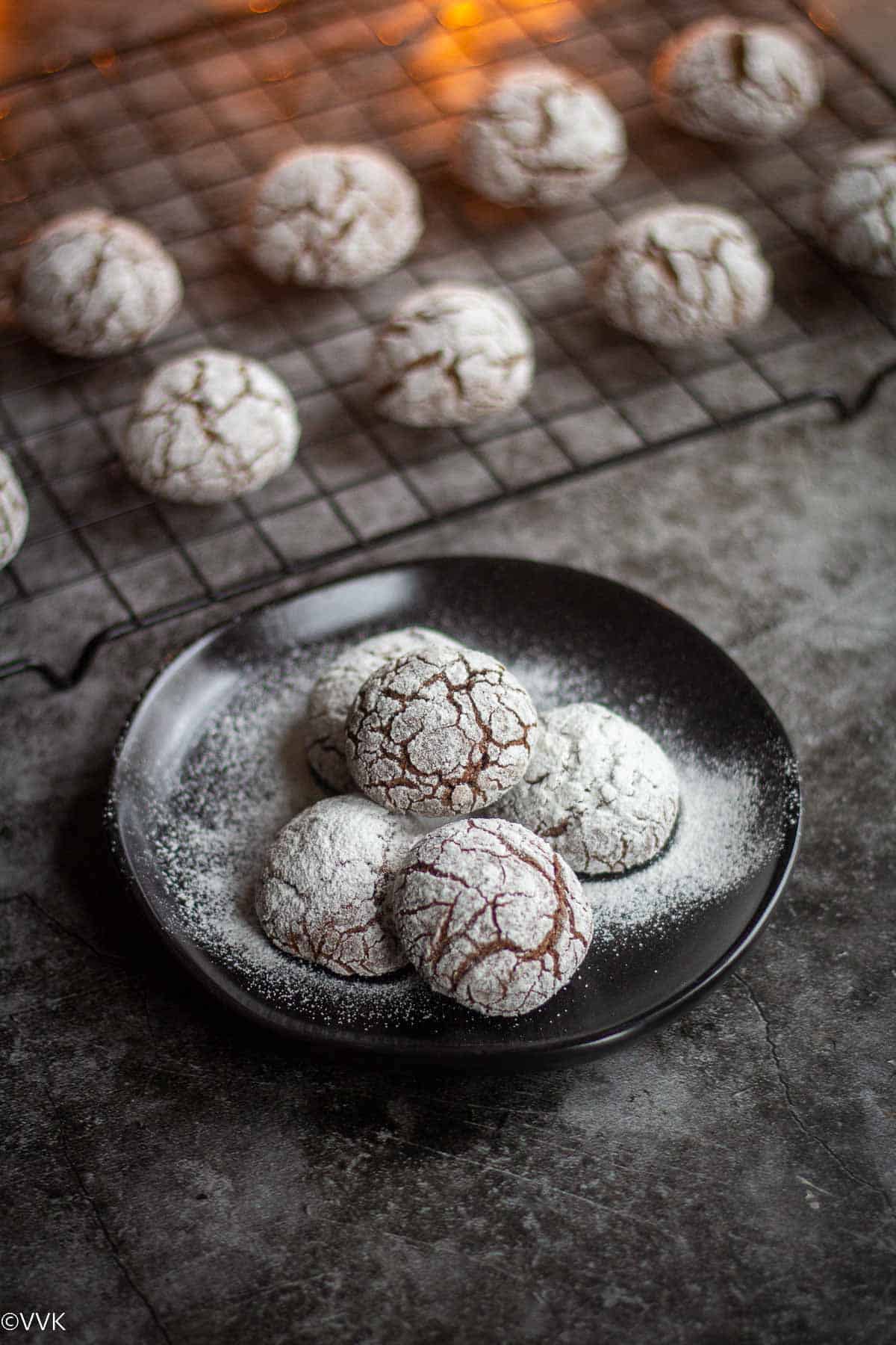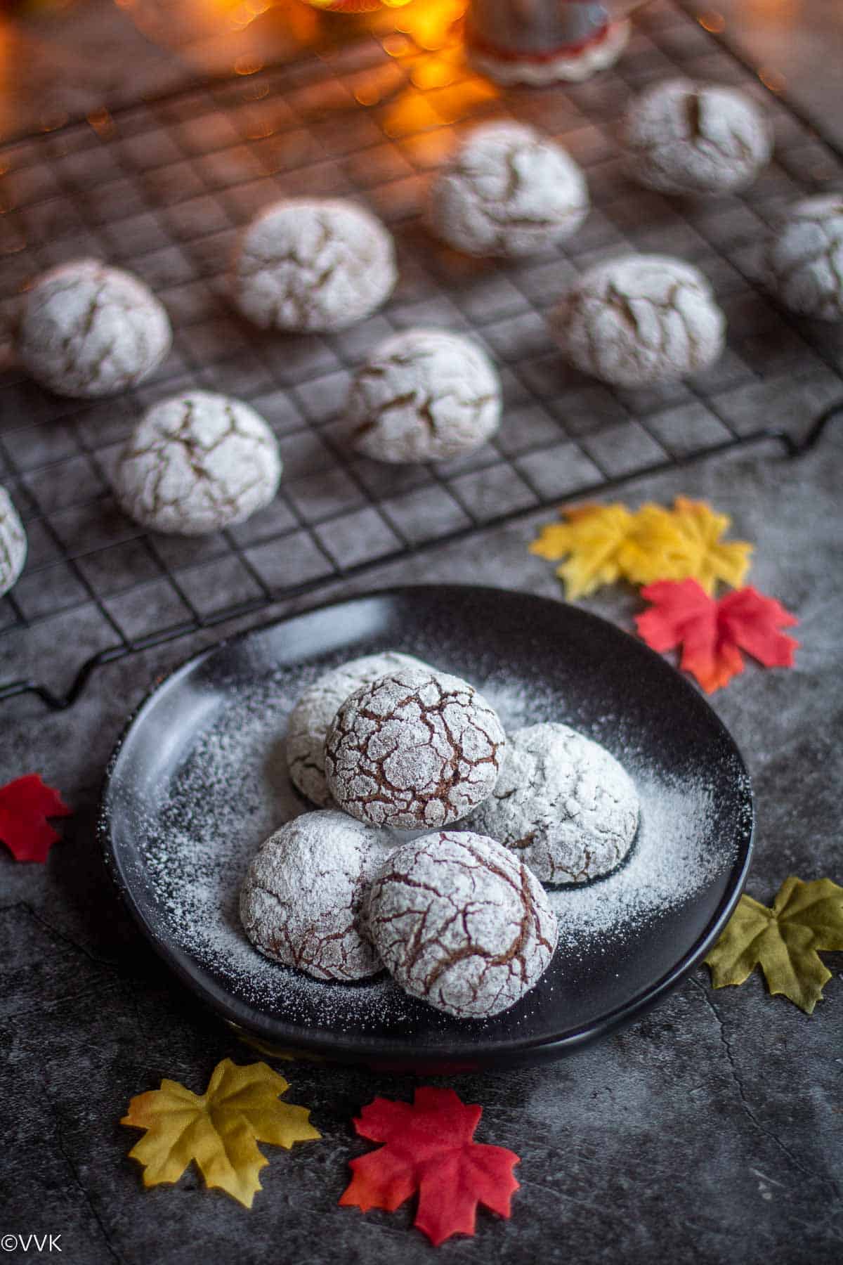 Christmas special eggless chocolate crinkle cookies with a soft, fudgy center and crispy outside! Here is my easy-to-make eggless crinkle cookie recipe with detailed step-wise pictures.