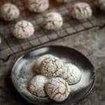 Chocolate crinkle cookies, snow cookies, or chocolate crinkles are a classic Christmas cookie recipe that is super easy to make. Soft and fudgy brownie-like cookies coated with powdered sugar, which gives the snowy and crinkly look, makes it super festive, and they are perfect for a Christmas cookie tray, dessert board, or a cookie exchange. Honestly, they are perfect all year round. These mildly sweet chocolate cookies are so delicious and perfect for any occasion.