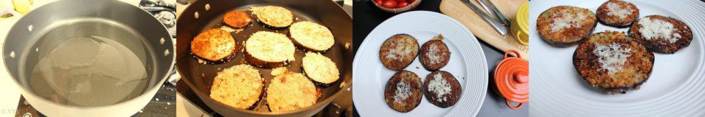- You can skip shallow frying completely and bake for about 30 minutes. If you grease the baking tray generously, flipping the eggplant slices with cheese should be easy enough. (I have tried)
