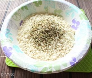 - Mix Panko breadcrumbs, oregano, and pepper powder together.
