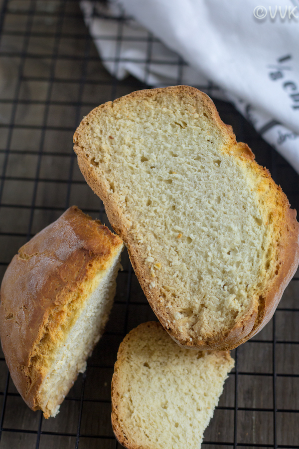 The bread is comparatively denser, and it is more like scones because of the buttermilk. You can serve this along with soup or stews, or you can relish it with butter smeared.