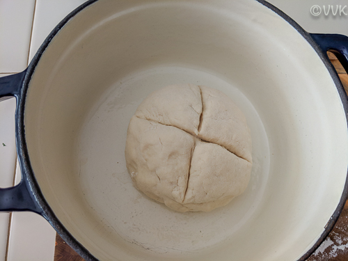 - Grease a Dutch oven and place in the oven and preheat oven to 425 degrees F. We need to preheat the Dutch oven too.