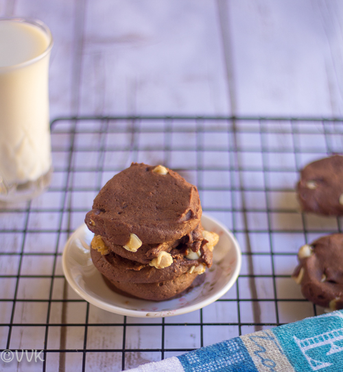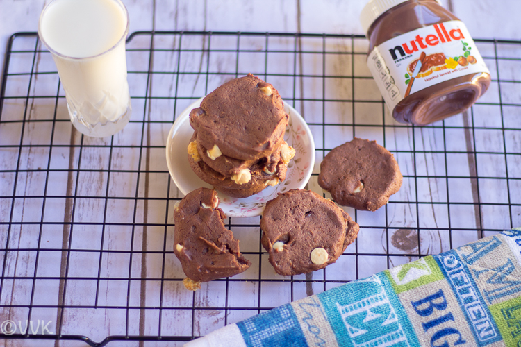 Nutella cookies look sinfully delicious. Though white choco chips are of Vaandu’s choice, those adorn the cookies.