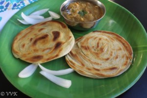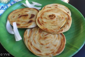 For this week’s blogging marathon the theme is Regional Cuisine. I picked Madurai and Virudhunagar and now you know why I did the review of this book :-) So I chose Madurai/Virudhunagar for this Regional Cuisine and you will be seeing three street side food from Madurai, as we say Thallu Vandi Style recipes and here is the first one Parotta. We all know Madurai is know for Malli (jasmine flower), Meenkshi Amma Temple and Thirumalai Nayakar Mahal. The city is also called as Thoonganagaram meaning the city never sleeps. So these thallu vandi’s or street side food are very popular and you can find them even at night.