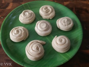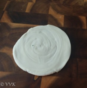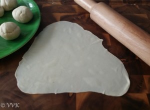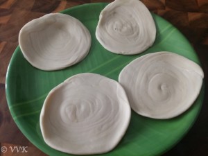 You can also prepare this with wheat flour or also with half maida and half wheat flour. I went with maida and kneaded well to bring out the gluten content. I didn’t do the veechu(வீச்சு) though.