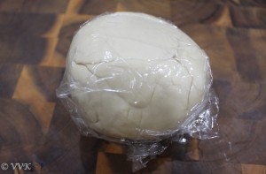 - Now apply 2 tsps of oil on the dough and wrap it up with cling wrap and let it sit for 3 hrs in fridge.