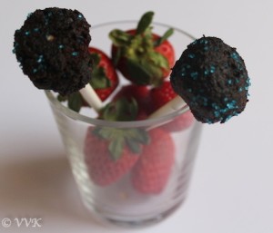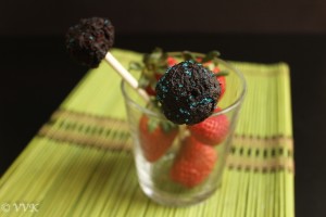 And with the leftover scraping and cake, I prepared this cake balls. The Choco lava acted as the binding agent so I didn’t add additional butter or cream. Just made the balls, inserted the pop sticks and drizzled some blue sugar crystals and refrigerated them for an hour. That’s it. Here they are,