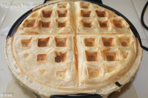 That’s it. Waffles are ready. Serve it right away with syrup and fruits.