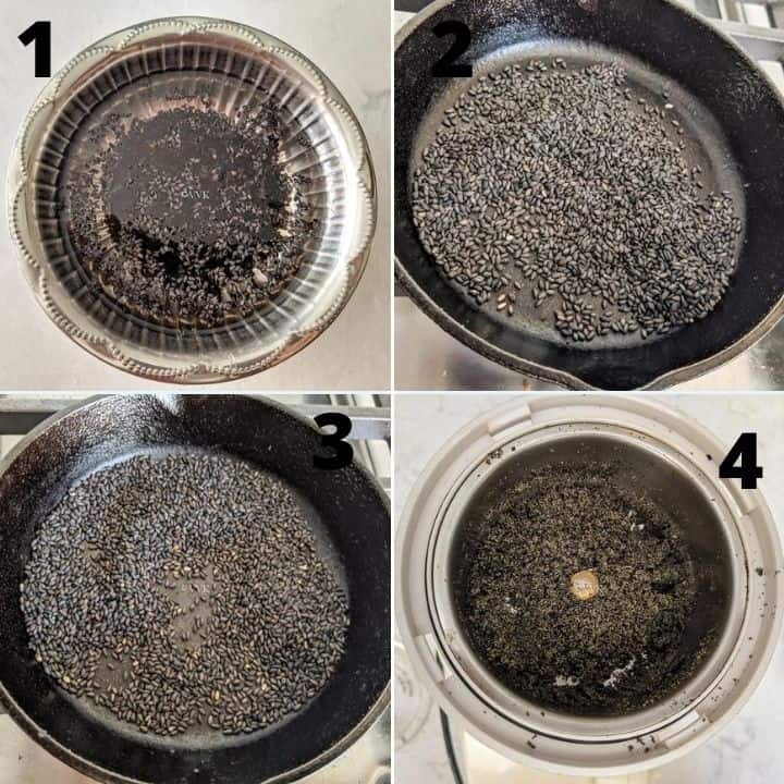 - You can find how to make cardamom powder on my YouTube channel. If you don’t have cardamom powder, you can use one whole green cardamom. Crush it and roast it along with black sesame seeds. You can discard the outer covering and grind it, or you can include the covering as well.