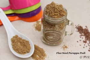 I love to relish my rice with spice powders like paruppu podi, karuvepillai podi, thengai podi, and recently I started to experiment with spice powders with flaxseeds, and here is one. I made it more like paruppu podi with a combination of toor dal and flaxseeds.