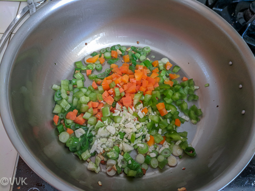 - Make sure you cook over a high flame. We are going to flash cook all the veggies. Hence high heat is vital.