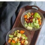 Chaat refers to the spicy, tangy, and flavorful Indian street foods, and this fruit and vegetable chaat is my take on the Delhi fame kulle chaat. Simply put, fruit chaat is nothing but Indian-style fruit salad, and my version also has peanuts, carrots, and cucumber.