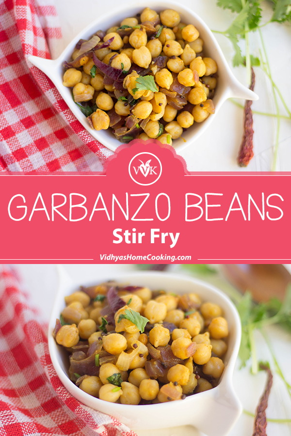 - If you want to experiment with this Garbanzo Beans Stir-Fry recipe, you can replace garbanzo beans with any beans of your choice. If you are using canned beans, drain the water and wash twice before adding it to the onion mix.